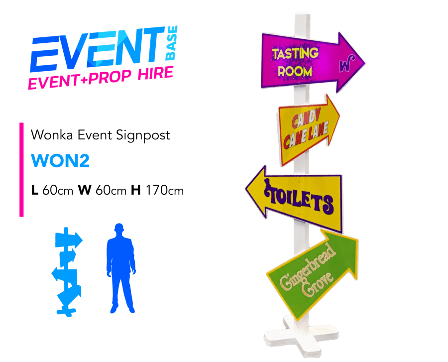 Description: Introducing our Wonka Direction Signpost. This prop model is suitable as simply a giant decorative sweet or candy prop at your event. Check our all our other Giant Sweet, Gingerbread, Chocolate & Candy Bar themed products. This prop display model is ideal for any Celebrations, Birthday Parties, Anniversaries, Christmas, Santa's Grotto, Candy Land, Charlie & the Chocolate Factory, Willy Wonka, Carnival, Grinch or Giant Sweet theme!