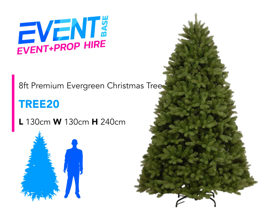 Description: Introducing our 8ft Evergreen Tree Event Prop for hire. Our Evergreen Artificial Christmas Trees are a hugely popular Festive Event Hire product with literally 100's in stock in different shapes and sizes. Our Evergreen Christmas Trees look great to create a natural looking alpine display or you may choose to add lights and decorations like a Traditional Christmas Tree. Our trees are quickly and easily set up at your venue. You can choose to self install or have our crew install as part of your event hire package. Fully decorated trees in a choice of colour options available to hire. Speak to a member of our EventBase team to discuss delivery, installation and collection pricing. As with all our event hire products, these trees are available on a daily, weekly, monthly or seasonal basis, the longer you hire, the lower the average day rate!
