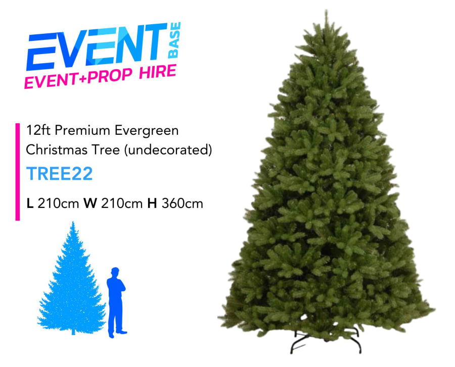 Description: Introducing our 12ft Evergreen Tree Event Prop for hire. Our Evergreen Artificial Christmas Trees are a hugely popular Festive Event Hire product with literally 100's in stock in different shapes and sizes. Our Evergreen Christmas Trees look great to create a natural looking alpine display or you may choose to add lights and decorations like a Traditional Christmas Tree. Our trees are quickly and easily set up at your venue. You can choose to self install or have our crew install as part of your event hire package. Fully decorated trees in a choice of colour options available to hire. Speak to a member of our EventBase team to discuss delivery, installation and collection pricing. As with all our event hire products, these trees are available on a daily, weekly, monthly or seasonal basis, the longer you hire, the lower the average day rate!