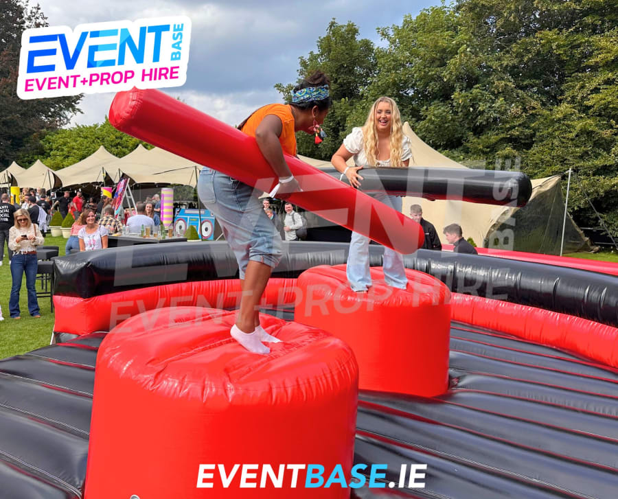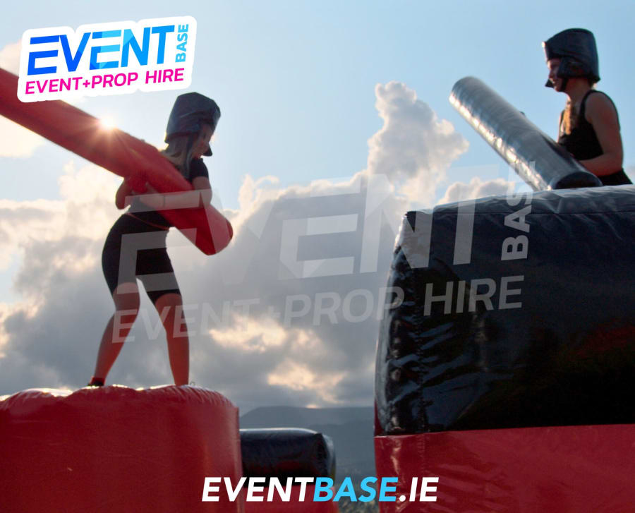Unleash your inner warrior! 💥 The Inflatable Gladiator Jousting Duel is the ultimate two-player inflatable game hire in Ireland – perfect for parties, school events, festivals, corporate fun days and team-building events. Inspired by the legendary Gladiators TV show, this adrenaline-pumping game sees two contenders battle it out on raised podiums using padded pugil sticks – all set atop a giant inflatable arena!