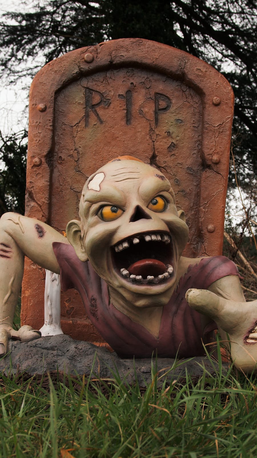 RIP Skull Grave Stone with Candles Prop