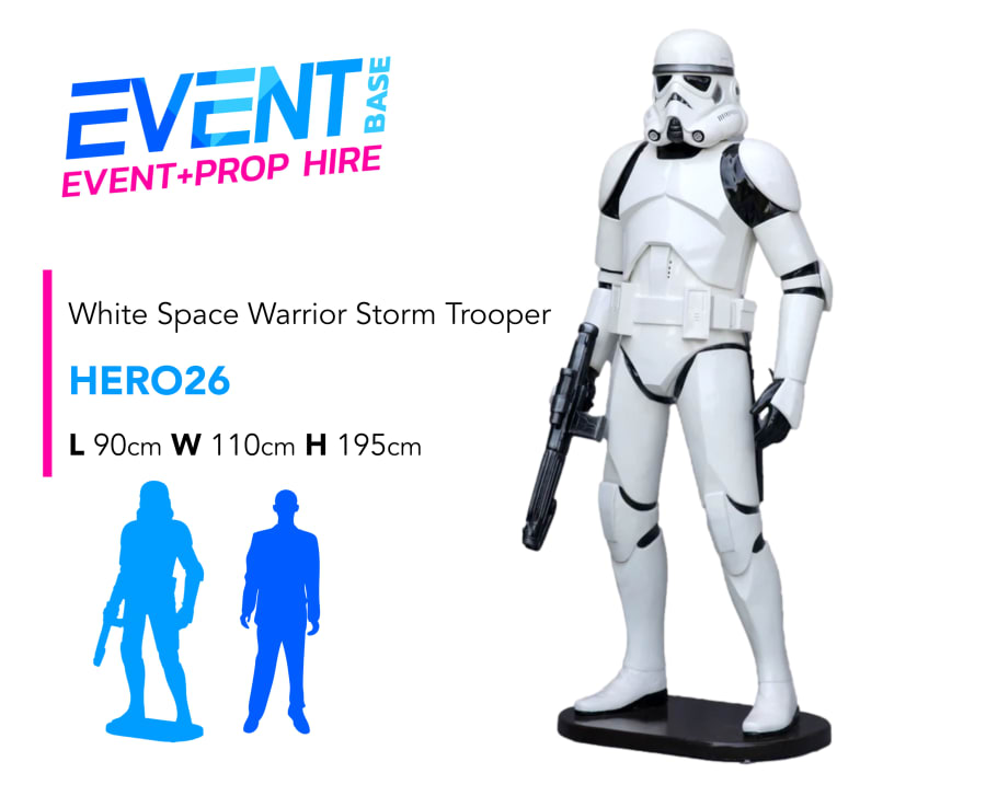 Description: Fancy having a cool replica Superhero Character Statue at your event, check out this life-size 'White Space Warrior Storm Trooper' inspired Giant life-size prop model statue for hire. This prop model for hire is perfect for any Superhero & Villain, Comic Book Theme, Toy Town, Giant Toy Theme, Santa's Workshop, Marvel Theme, Super Hero & Princess, Space Age, Halloween & many more... We have the widest selection of Themed Display & Seasonal Theme props in Ireland. Contact our team today to get planning your next event!