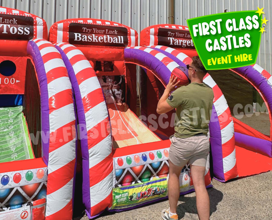 Our inflatable stall combines three exciting games in one impressive unit, with three distinct walk-up booths: