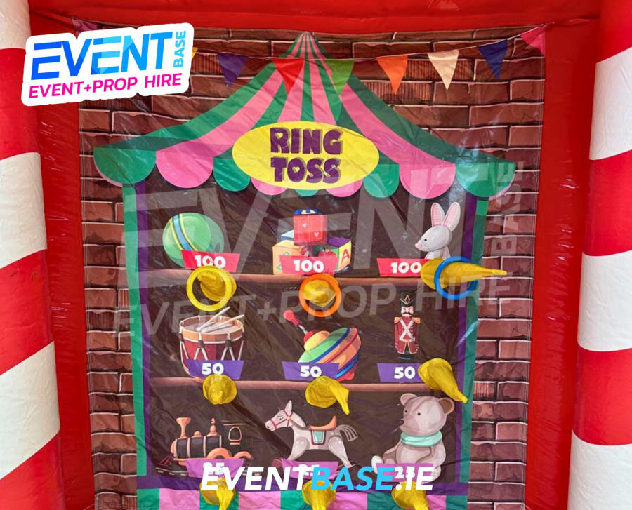 Perfect for corporate entertainment, school fairs, community fundraisers, and private parties, this vibrant inflatable stall offers three classic carnival games in one impressive attraction: