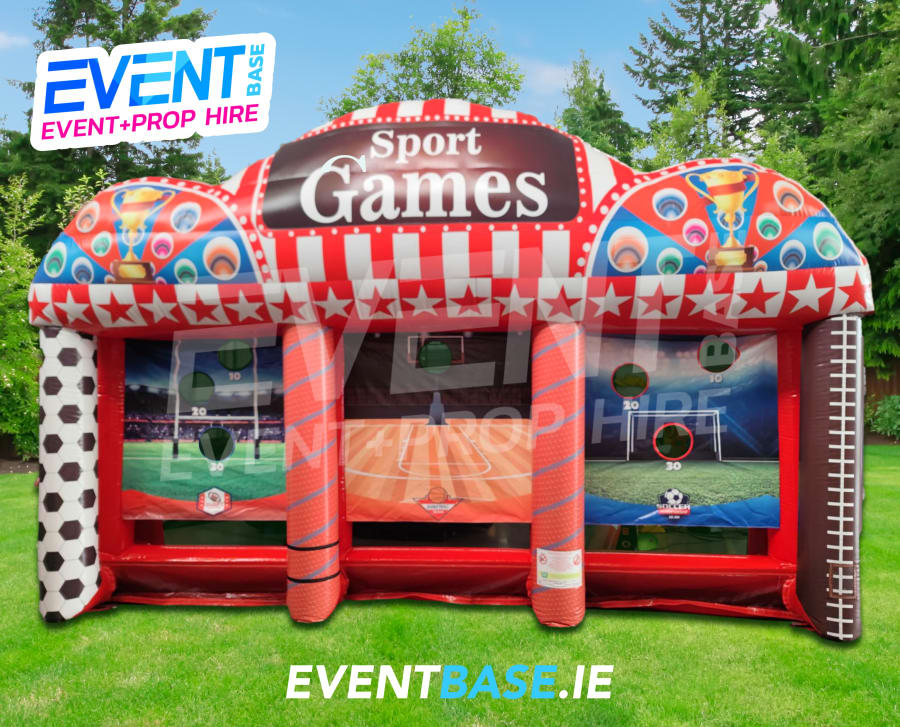 Perfect for corporate events, school fairs, community fundraisers, or private parties, this colourful attraction features three action-packed sports games in one impressive unit:
