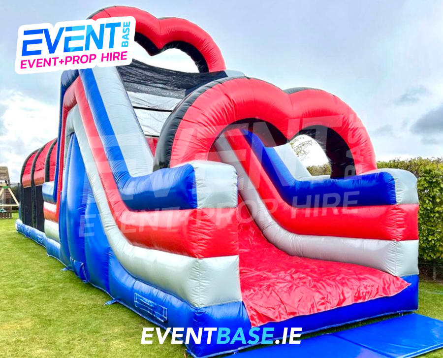 The whopping great obstacle course incorporates an up and over slide, biff and bash, and bouncing area, hurdles, whackers, biff and bash posts, mini humps, obstacle humps, crawl through tunnels and much much more!. Make your day with this unique, action-packed obstacle section. The inflatable obstacle course offers a safe entrance way, followed by a random series of obstacles including a series of biff and bash pillars, cool chill out area in the middle, hurdles and finishes with an adrenaline fuelled 10ft platform slide at the end. The obstacle course is the perfect choice for any children or adults event.