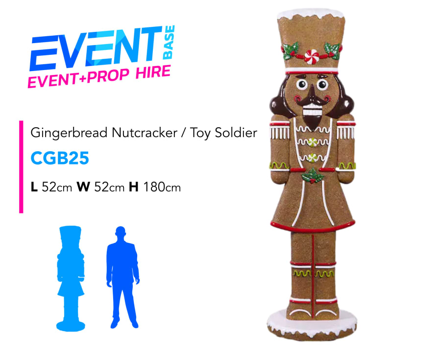 Description: We're delighted to introduce our stunning Gingerbread Nutcracker / Toy Soldier giant figurine props for hire, complete with iced frosting detailing! This prop display model is ideal for any Christmas, Santa's Grotto, Candy Land, Charlie & the Chocolate Factory, Willy Wonka, Carnival, Grinch or Giant Sweet theme! Complete the set with out matching Gingerbread props available to hire!