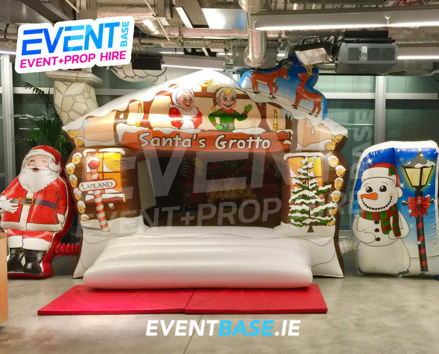Description: 15ft(L) X 19ft(W) X 10ft(H) Incredible Christmas themed Bouncy Castle with inflatable characters to the side. This bouncy castle also has a retaining wall to the front for safety and also to hold softplay balls acting as an inflatable ballpool if required. Visually stunning log cabin design, a perfect compliment to our inflatable log cabin grottos. This castle is designed to keep the slide and castle covered in the event of bad weather. Can also be used indoors, fits comfortable beneath a standard 10ft ceiling height.