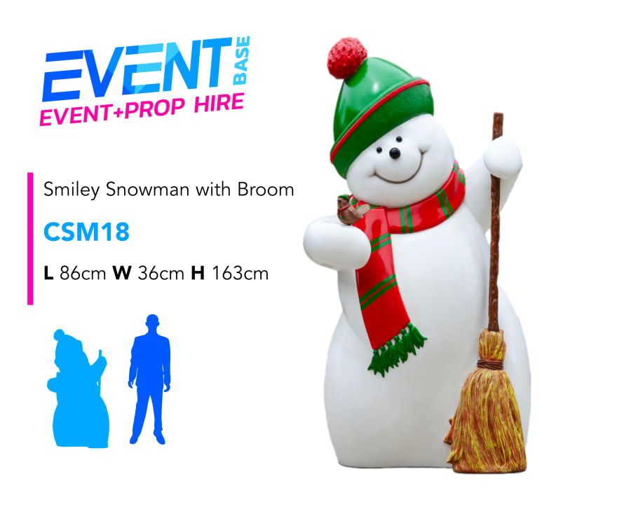 Description: This fantastic animated looking smiley Snowman Character is a very popular Christmas Prop standing at 5ft high complete with a broom. We have a huge range of Christmas event props available for hire. Including life-size reindeers, snowmen, santa's throne, sleighs & lots more... Contact us for further information. Long and short-term hire available. Check out our other items which may be added to this item in order to create a unique Santa's Grotto. Full Event Hire & Grotto Packages available including; Grotto, Lighting, Santa's Throne, Props, Carpet, Christmas Trees, Decorations etc... Grotto Management including Staff & Gifts also available. Don't forget to use our search bar on our homepage to find exactly what you need!