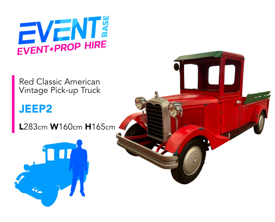 Bring timeless American charm to your next event — hire the Red Vintage Pickup Truck Prop exclusively from EventBase.
