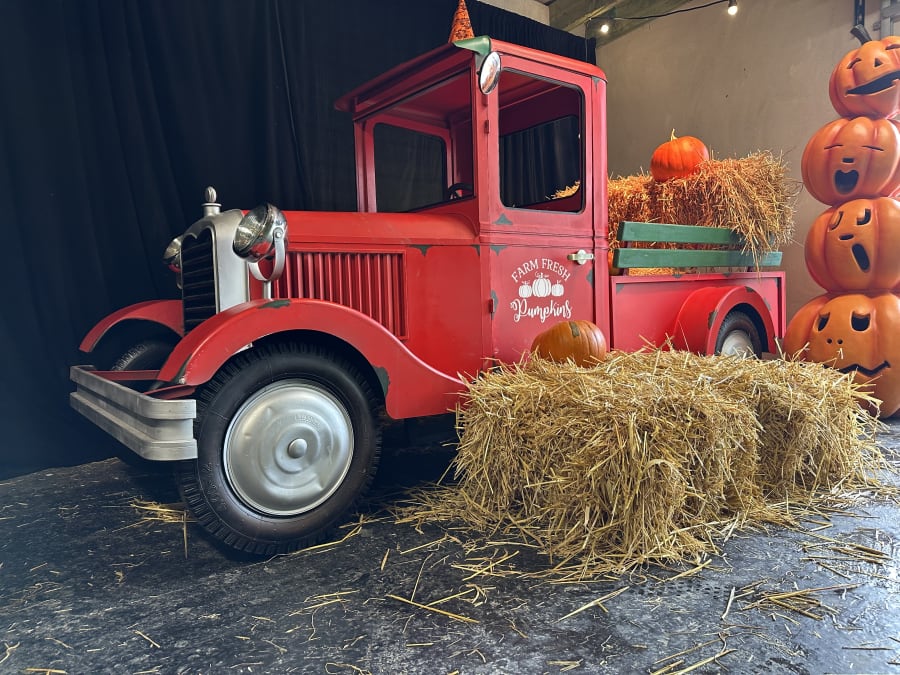 Guests can sit inside the cab or pose beside the truck for an unforgettable photo opportunity, making it a guaranteed crowd-pleaser at venues, shopping centres, festivals, or themed installations. Whether styled as a Christmas Tree Farm scene, Pumpkin Patch, Vintage Americana, or Rustic Wedding backdrop, this versatile prop adds authentic charm and cinematic flair.
