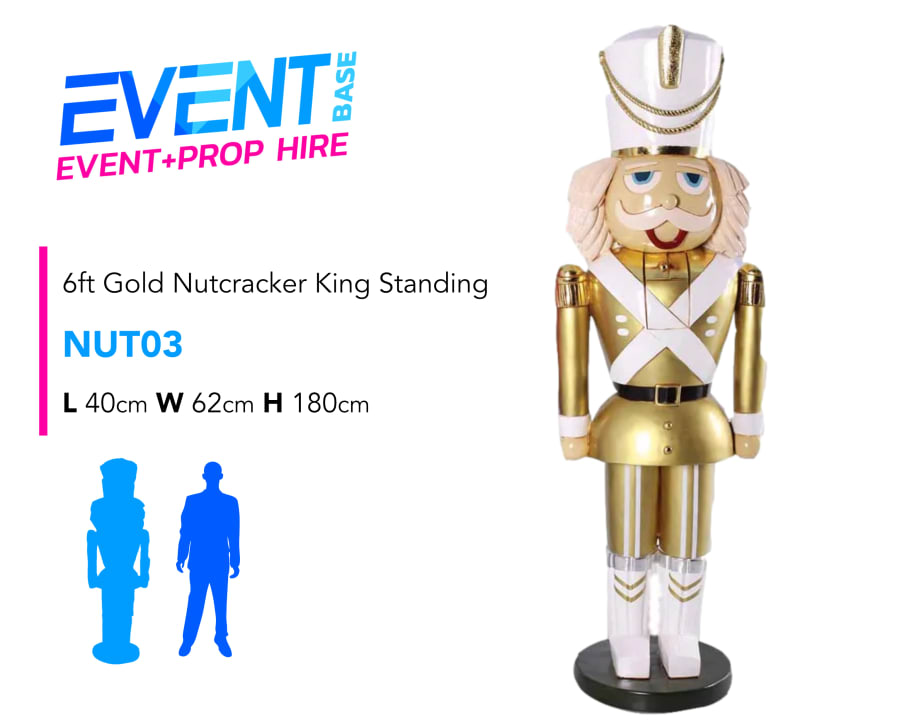 Description: This Gold & White Nutcracker is a custom colour combination we have created, and we must say it does look very sophisticated standing at 6ft tall. We have created Gold Podiums available as an add-on to boost the height to 8.5ft if desired. At EventBase we pride ourselves in having the largest selection of Life-size Nutcracker, Toy Soldier, Guards & Tin Soldier Models. Viewing available by appointment at our warehouse to choose your event selection first-hand. All our props are visually stunning and look fantastic in any event venue. We have a huge range of Christmas event props available for hire. Including life-size reindeers, snowmen, santa's throne, sleighs & lots more... Contact us for further information. Long and short-term hire available. Price is per model, for pairs add two quantity... these guys always look best in pairs at either side of an entrance for example. Check out our other items which may be added to this item in order to create a unique Santa's Grotto. Full Event Hire & Grotto Packages available including; Grotto, Lighting, Santa's Throne, Props, Carpet, Christmas Trees, Decorations etc... Grotto Management including Staff & Gifts also available. Don't forget to use our search bar on our homepage to find exactly what you need!