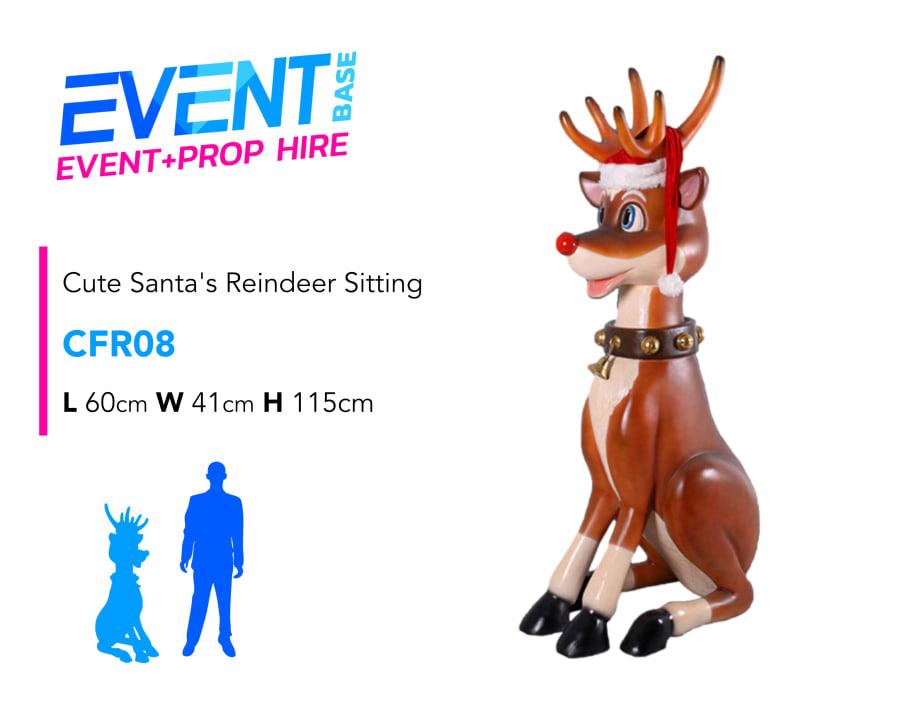 Description: This cute little reindeer prop for hire is sitting upright. This model looks great in front of a sleigh for example for a fun looking scene. Our funny reindeer series is an animated, fun looking, cheeky & yet cute style of poly-resin statue. All these models are hand-painted making these a striking prop hire model. Don't forget to check out our other cheeky fun reindeer! We have a huge range of Christmas event props available for hire. Including life-size reindeers, snowmen, santa's throne, sleighs & lots more... Contact us for further information. Long and short-term hire available. Check out our other items which may be added to this item in order to create a unique Santa's Grotto. Full Event Hire & Grotto Packages available including; Grotto, Lighting, Santa's Throne, Props, Carpet, Christmas Trees, Decorations etc... Grotto Management including Staff & Gifts also available. Don't forget to use our search bar on our homepage to find exactly what you need!