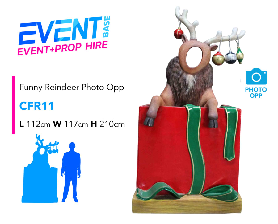 Funny Reindeer with Gift / Present Photo Opp (CFR11)