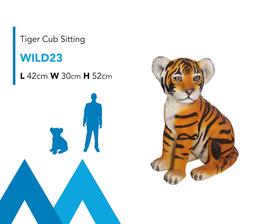 Description: Introducing our Tiger Cub Sitting Prop Hire Event model for hire. This prop model for hire is perfect for any Jungle, Lion King, Safari, Tropical Rainforest, Wild Animals & many more... We have the widest selection of Jungle Safari Themed Event Hire Props in Ireland. Contact our team today to get planning your next event! Don't forget to take a look at our other Wild Animal, Jungle & Safari Themed Event props available to rent including, Elephants, Tigers, Giraffes, Lions, Monkeys, Snakes, Hippos, Rhinos, Flamingos, Parrots, Cheetah & much more...