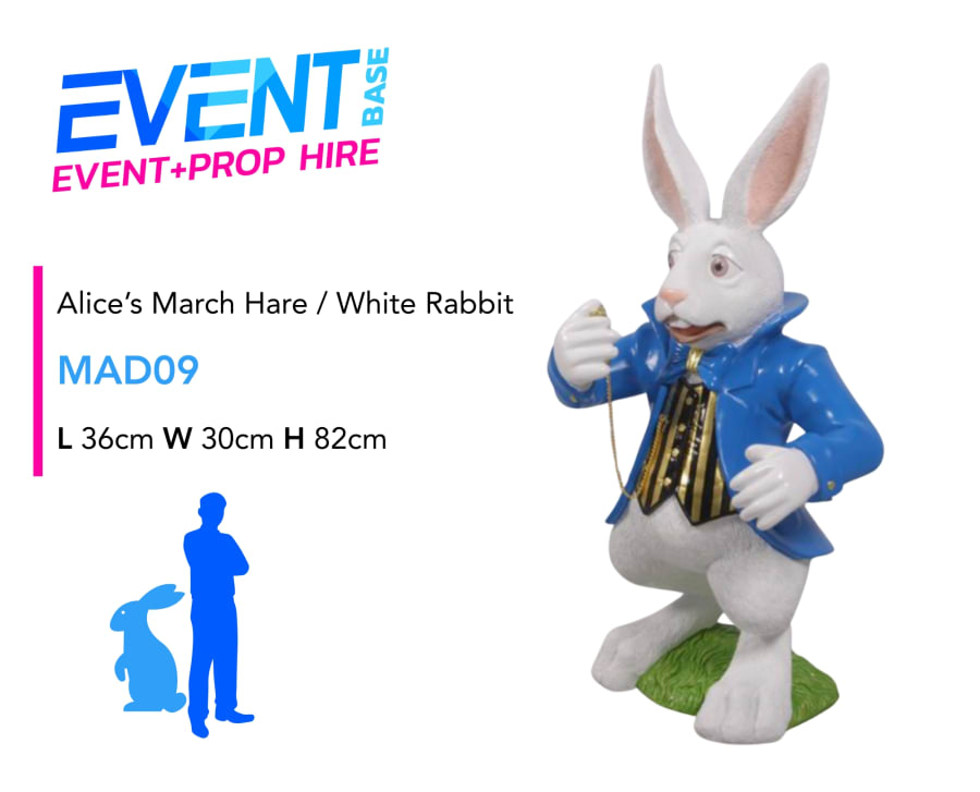 Bring the magic of Alice in Wonderland to life with our charming March Hare / White Rabbit Prop (Small) for Hire. Inspired by the iconic Wonderland characters, this playful prop adds character, colour and storybook charm to themed events and decorative installations.
