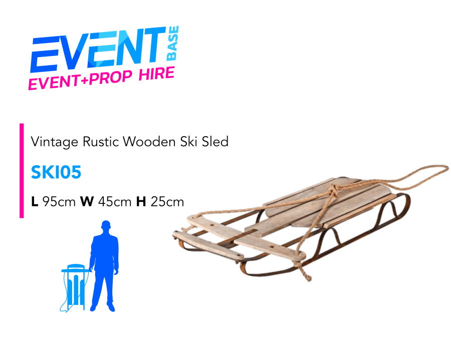 Description: Bring the 'Pistes' to your Party! Our Rustic Ski Sled / Toboggan Props are an exceptional decorative piece to set the scene. Transport your guests on an Après Ski Party on the Ski Slopes. These stunning vintage sleds can be used simply as decorative items or as to enhance photo scenes & festive displays at your Christmas Wonderland or Après Ski Themed Event! Complete the look by browsing our complete range of props available to hire including; Snow Trees, Festoon Lighting, Apres Ski Signage, Vintage Suitcases, Vintage Ski Sets, Reindeer Rugs & Furs, Uplighting, Snow Themed Backdrops & more… Recreate a stunning Alpine setting combining a selection of our props.