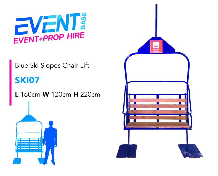 Description: Bring the 'Pistes' to your Party! Our Blue Ski Slope Chair Lift Prop for Hire is an exceptional decorative piece to set the scene. Transport your guests on an Après Ski Party on the Ski Slopes. This incredible Ski Slope Chair Lift prop can be used simply as decorative items or as to enhance photo scenes & festive displays at your Christmas Wonderland or Après Ski Themed Event! Complete the look by browsing our complete range of props available to hire including; Snow Trees, Festoon Lighting, Apres Ski Signage, Vintage Suitcases, Vintage Ski Sets, Reindeer Rugs & Furs, Uplighting, Snow Themed Backdrops & more… Recreate a stunning Alpine setting combining a selection of our props.