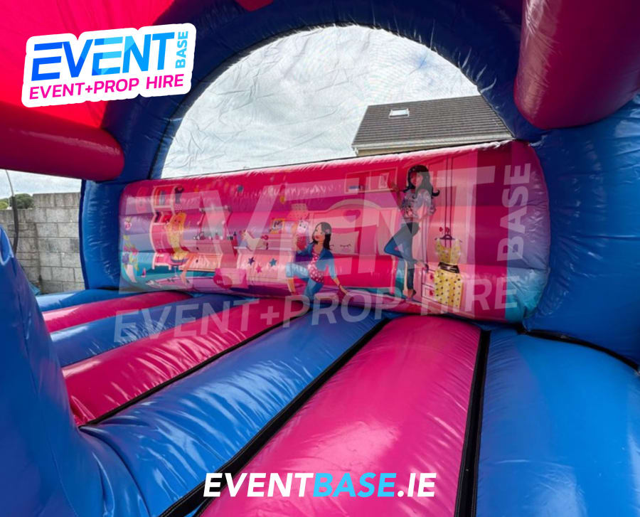 - 3D Malibu Barbie themed bouncy castle with front-slide combo