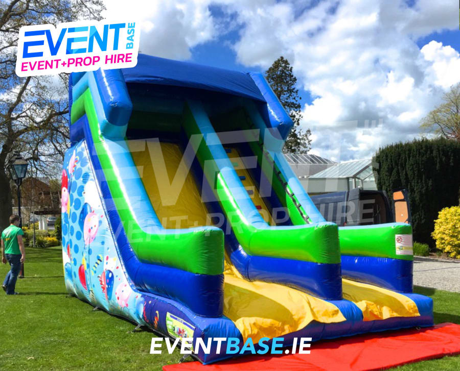 Description: Our hugely popular Neutral Theme Party Bouncy Slide. Great fun for most age groups, this Bouncy Slide is stunning and will be sure to have the neighbours talking. It's overall height is 20ft with a 10ft high platform and is sure to be a real crowd pleaser. This slide is only 12ft wide, but still has the benefit of a high platform slide. Great value for such a large inflatable. (Colours may vary)