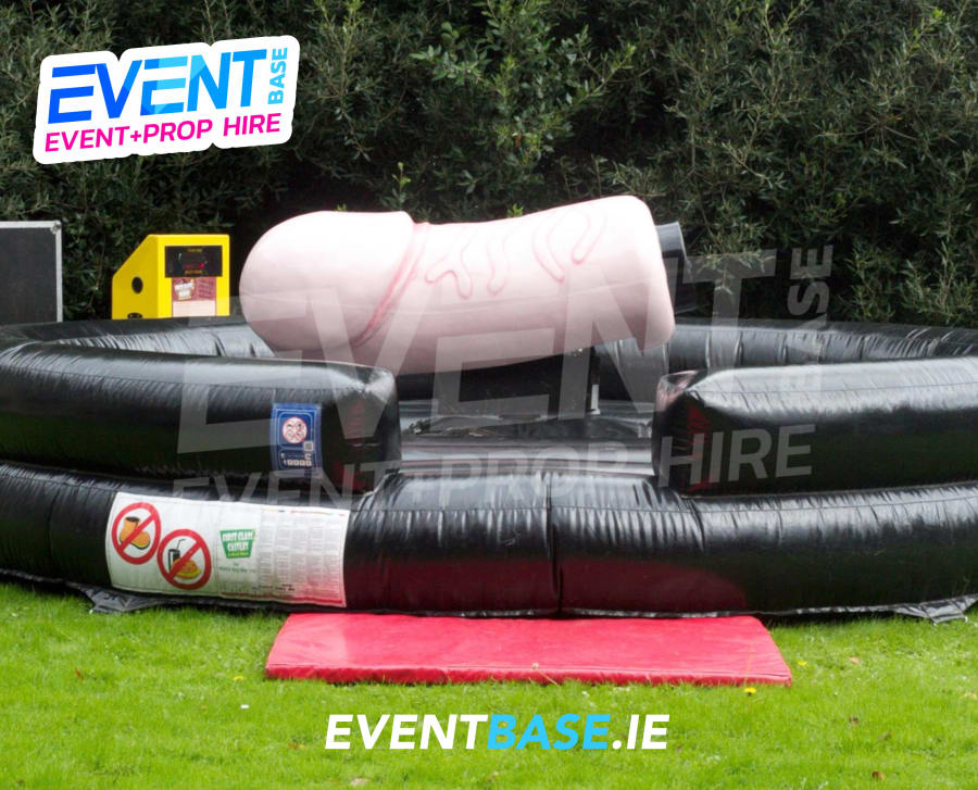 Don't worry if you fall off, our rodeo pudding is controlled by a fully trained member of staff during your event who will shut it down instantly when someone is knocked off the ride ensuring the safety of your guests. Due to the adult nature of this attraction, we recommend ages 18+ to use the Rodeo Penis and all guests who can mount the rodeo unaided will be able to have fun on our rodeo rides.