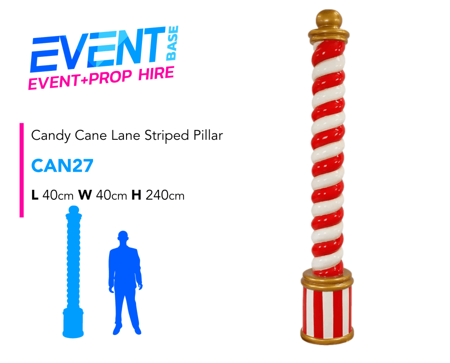 Description: Introducing our Candy Cane Lane Striped Pillars, standing at an impressing 8ft Tall & almost good enough to eat. These items are fantastic decorative props to flank the entrance of any Candy or Christmas Themed Event Space, or to set the scene in a Santa's Grotto Display. These look incredible!