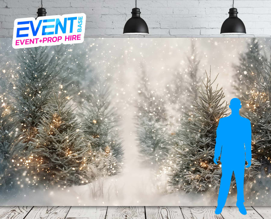 Bring the snow and magic of Christmas to your event with our stunning 6m X 3m Snowy Pines Christmas Trees Backdrop, available to hire nationwide from EventBase Ireland. Designed to recreate a magical Winter Wonderland Scene at your event with a depiction of a fantasy forest in a snow blizzard with fairy lit trees, this backdrop is perfect for adding instant Christmas atmosphere to any venue.