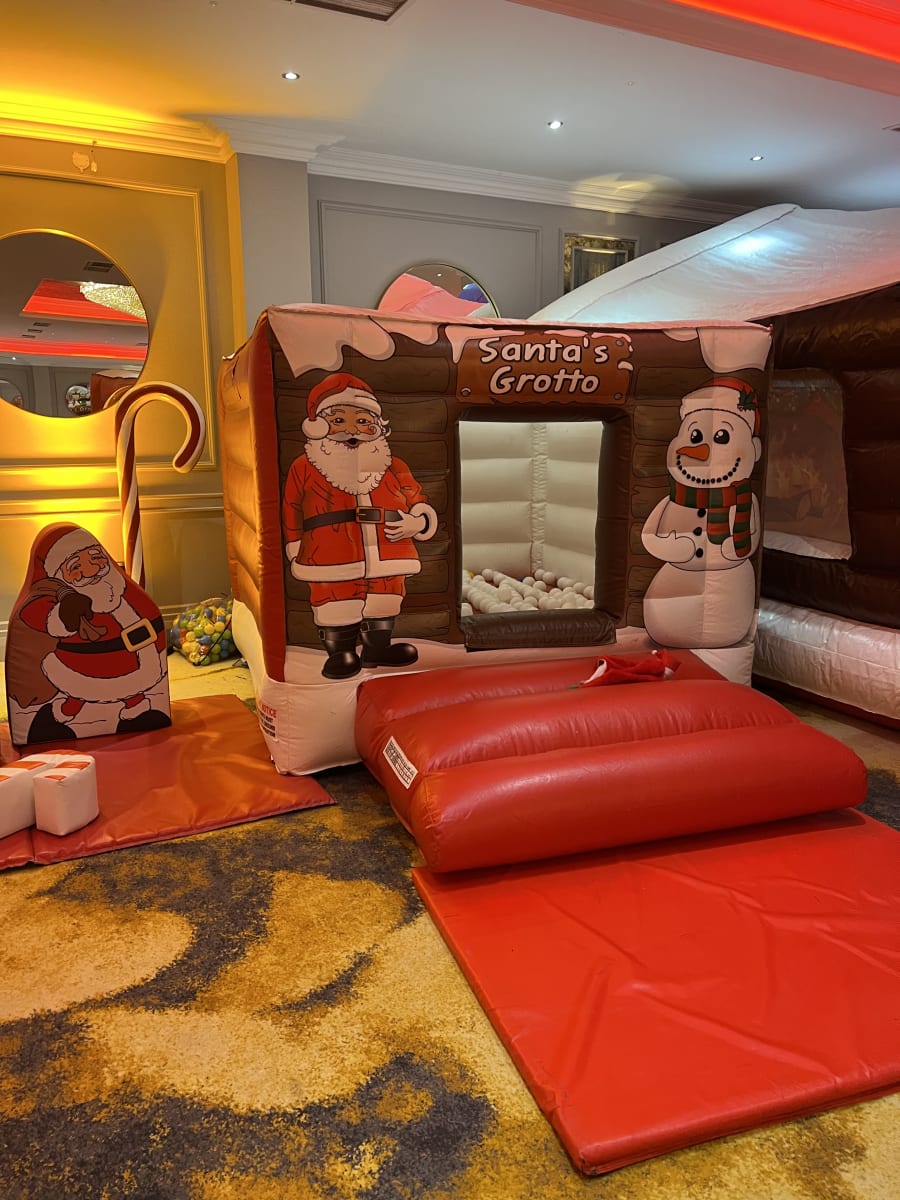 Description: 12ft(L) X 10ft(W) X 8ft(H)Incredible Christmas themed Bouncy Castle Ballpool, perfect toddlers. Visually stunning Christmas design, a perfect compliment to our inflatable log cabin grottos and Christmas Bouncy Castle. Can also be used indoors or outdoors, fits comfortable beneath a standard 10ft ceiling height. Add 250 matching red softly ball +€50.00.