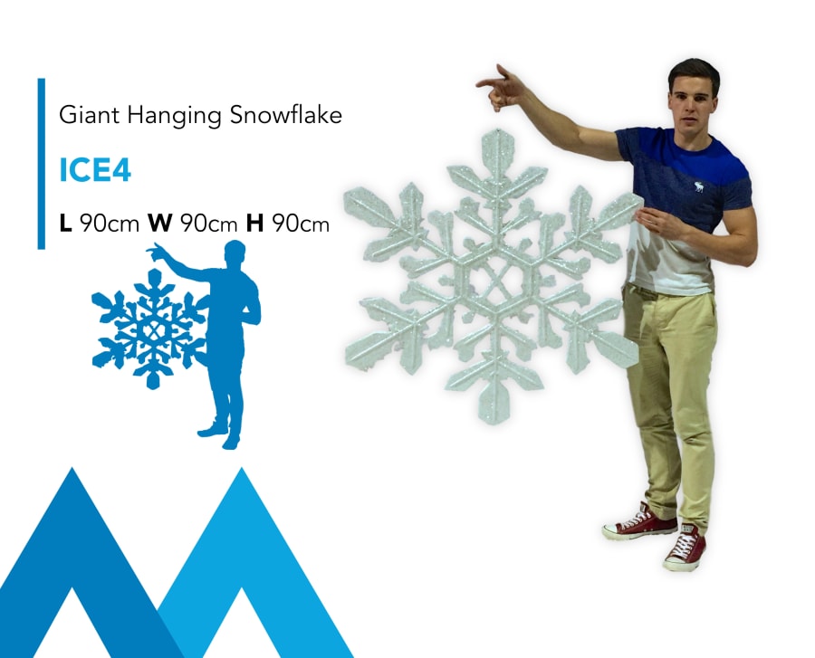 Description: This fantastic Giant Ice Snowflake Prop is an ideal model for Polar, Ice Cave, Winter, Ski Slope or Snow themed areas. This is a great poly-resin moulded unit treated with a glittered effect.