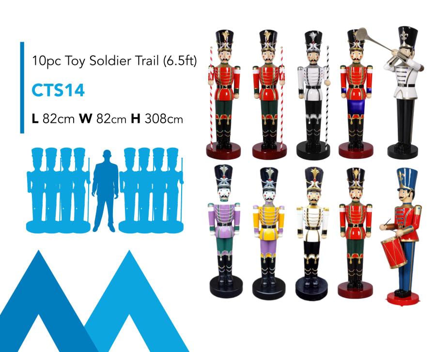 Description: Nutcracker Trails & Toy Soldiers came about initially as a Covid response & have been a huge hit since. These attractions offer a fun interactive display, where guests can travel around streets, cities or even corridors to find the full array of Nutrackers or Toy Soldier props. Each trail is designed to accompany a treasure map with a keyword displayed on the base of each statue. Guests follow the map, find the Soldiers & crack the code! We have Podiums or prop drums available as an add-on to boost the height even further if desired. You can BYO (build you own!) Nutcracker Trail using any quantity or combination of our Toy Soldier, Nutcracker & Tin Soldier models to have a colourful array of different characters. In previous years we have completed Nutcracker Trails for Local Corporations, Corporate Offices, Workspaces & Christmas Markets.