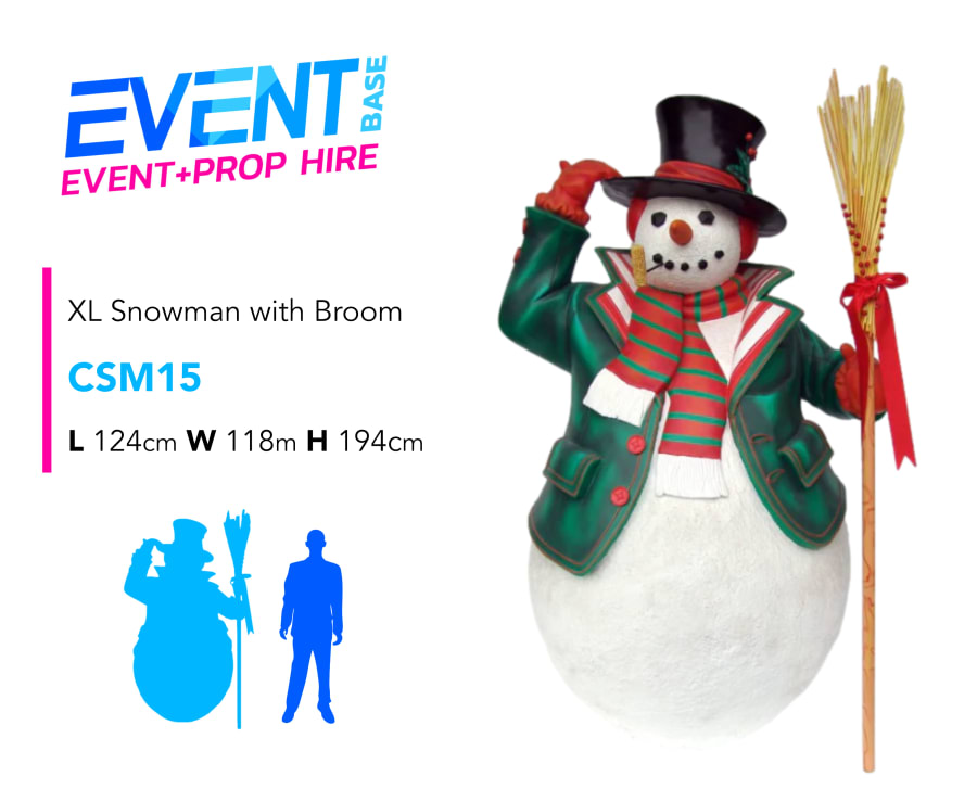 Description: A really nice Snowman prop model statue standing with broom in hand. Suitable for a wide variety of Christmas Party Event themes including; Ice, Frozen, Winter Wonderland, Snow Forest + many more...