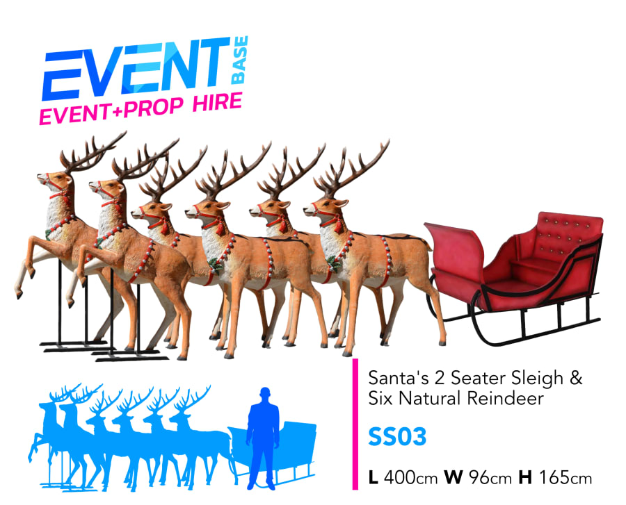 🎅✨ Make your Christmas event unforgettable with our Standard Santa's Sleigh & Six Reindeer Set (SS03). This stunning display is perfect for creating a magical atmosphere that will enchant guests of all ages. Whether you're planning a festive party, corporate event, or community gathering, our sleigh and reindeer set is the ideal centerpiece for your celebration.