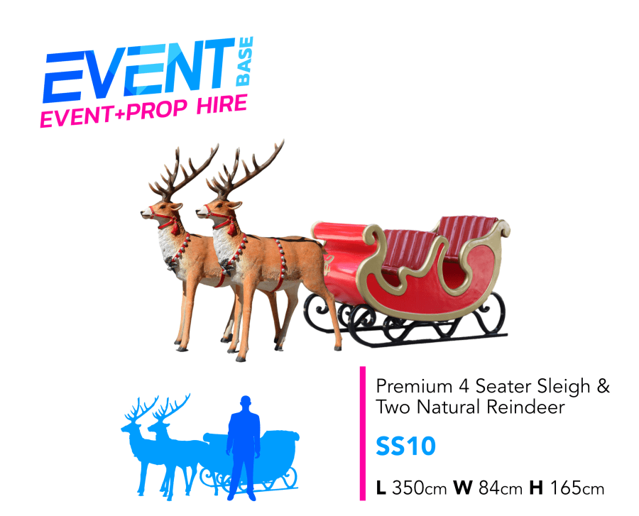 🎅✨ Make your Christmas event unforgettable with our Premium Four Kids Seater Santa's Sleigh & Two Reindeer Set (SS10). This stunning display is perfect for creating a magical atmosphere that will enchant guests of all ages. Whether you're planning a festive party, corporate event, or community gathering, our sleigh and reindeer set is the ideal centerpiece for your celebration.