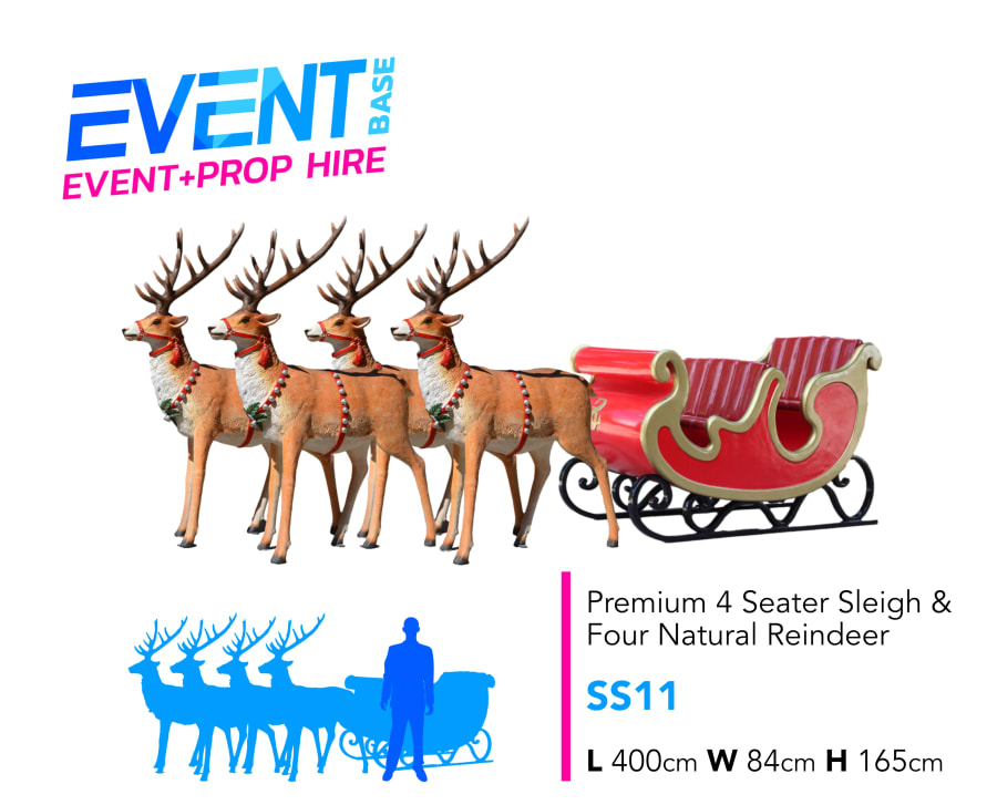 🎅✨ Make your Christmas event unforgettable with our Premium Santa's 4 Kids Seater Sleigh & Four Reindeer Set (SS11). This stunning display is perfect for creating a magical atmosphere that will enchant guests of all ages. Whether you're planning a festive party, corporate event, or community gathering, our sleigh and reindeer set is the ideal centerpiece for your celebration.