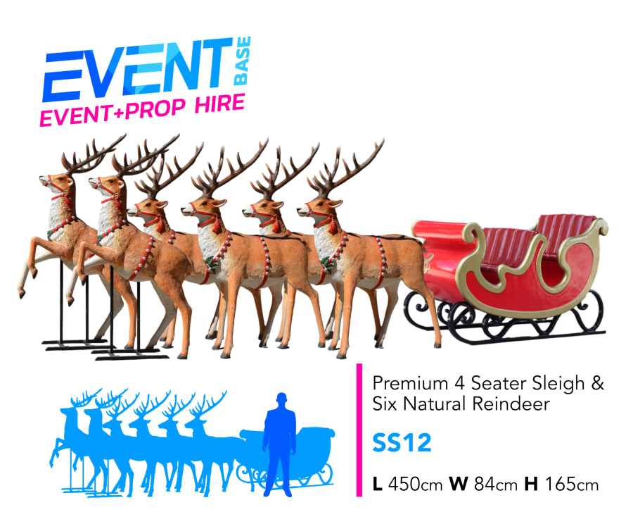 🎅✨ Make your Christmas event unforgettable with our Premium 4 Kids Seater Santa's Sleigh & Six Reindeer Set (SS12). This stunning display is perfect for creating a magical atmosphere that will enchant guests of all ages. Whether you're planning a festive party, corporate event, or community gathering, our sleigh and reindeer set is the ideal centerpiece for your celebration.