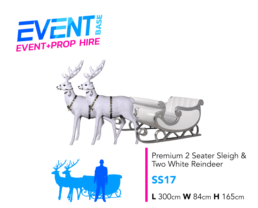 🎅✨ Make your Christmas event unforgettable with our Premium 2 Seater White Santa's Sleigh & Two White Reindeer Set (SS17). This stunning display is perfect for creating a magical atmosphere that will enchant guests of all ages. Whether you're planning a festive party, corporate event, or community gathering, our sleigh and reindeer set is the ideal centerpiece for your celebration.