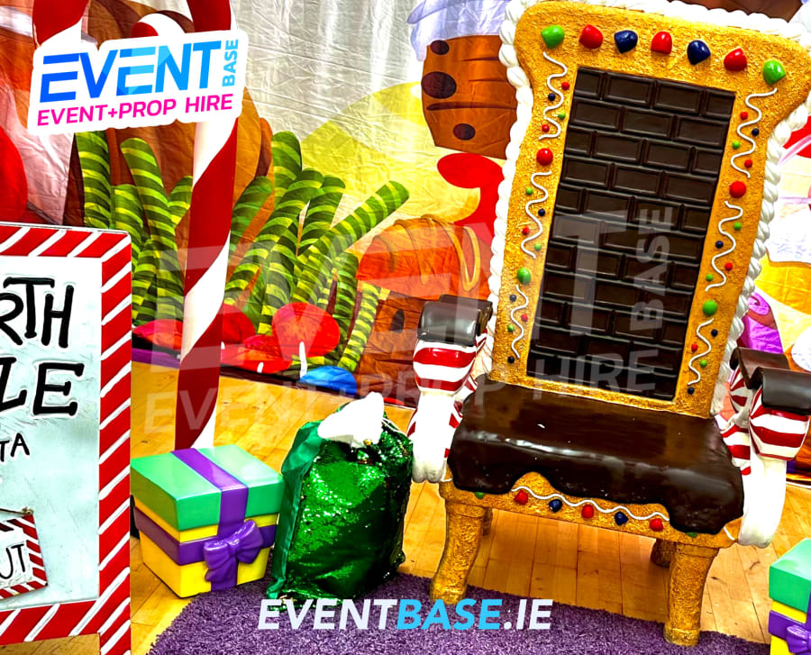 This amazing new style Throne is exclusively available in Ireland through EventBase. Perfect for any Candy Land, Gingerbread, Charlie & The Chocolate Factory, Willy Wonka, Santa's Grotto or Easter event... the uses are endless! We have a huge range of Christmas event props available for hire. Including life-size reindeers, snowmen, santa's throne, sleighs & lots more... Contact us for further information. Long and short-term hire available. Check out this fantastic Red & Gold Santa's Throne (see our matching postboxes and other thrones. This model would really be a wow factor for any Christmas display or grotto. It would be a great photo opportunity while people wait to see Father Christmas.