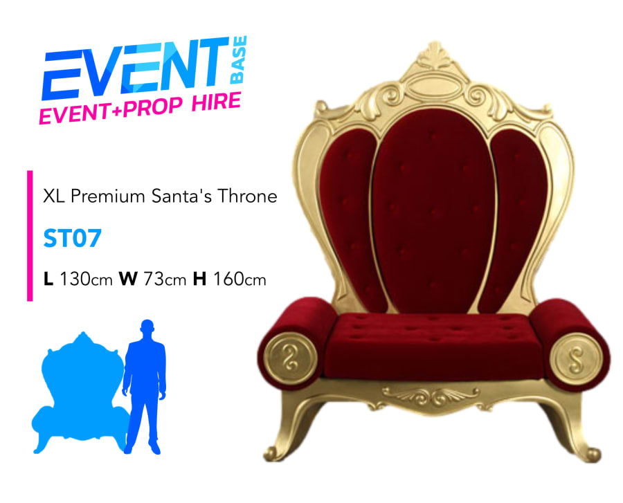 Description: This all new XL Throne is really impressive, extra wide allowing kids to hop up beside Santa for the ultimate Christmas Photo. Exclusively available in Ireland through EventBase. This unit is a fantastic photo opportunity and perfect for any Santa's Grotto. We have a huge range of Christmas event props available for hire. Including life-size reindeers, snowmen, santa's throne, sleighs & lots more... Contact us for further information. Long and short-term hire available. Check out our other items which may be added to this item in order to create a unique Santa's Grotto. Full Event Hire & Grotto Packages available including; Grotto, Lighting, Santa's Throne, Props, Carpet, Christmas Trees, Decorations etc... Grotto Management including Staff & Gifts also available.