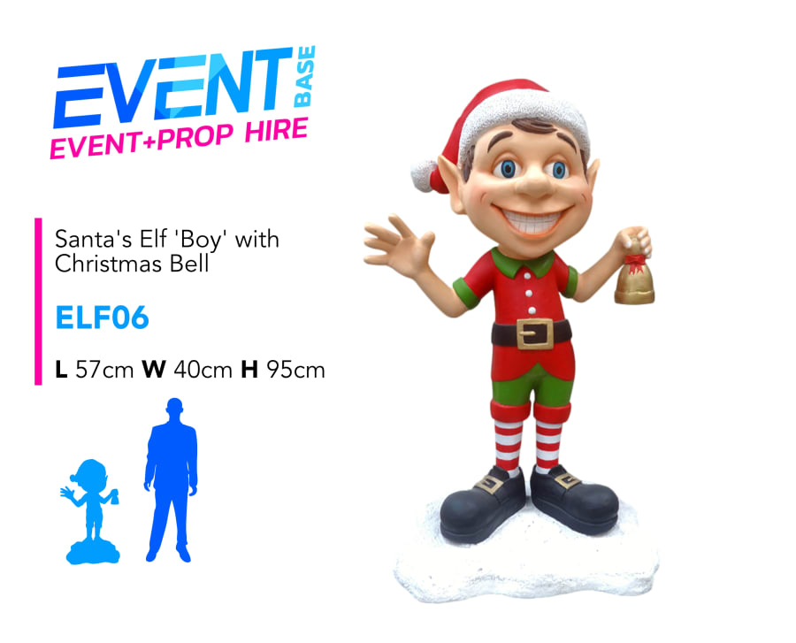 Description: Introducing 'Boy' a friendly Elf character holding Santa's Bell! This cute prop model measures 3ft in height and is the perfect hire item for a variety of Christmas Themes. Why not hire a full set of Boy with his family? We have a huge range of Christmas event props available for hire. Including life-size reindeers, snowmen, santa's throne, sleighs & lots more... Contact us for further information. Long and short-term hire available. Check out our other items which may be added to this item in order to create a unique Santa's Grotto. Full Event Hire & Grotto Packages available including; Grotto, Lighting, Santa's Throne, Props, Carpet, Christmas Trees, Decorations etc... Grotto Management including Staff & Gifts also available. Don't forget to use our search bar on our homepage to find exactly what you need!
