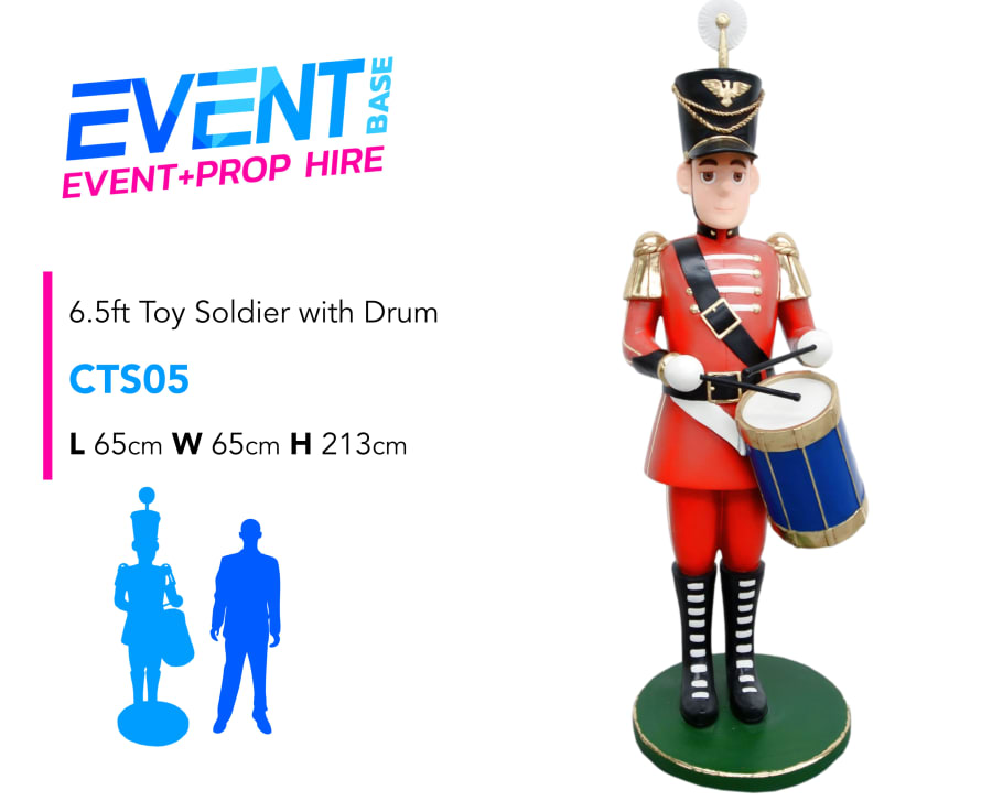 Description: Introducing this new Large 6.5ft Toy Soldier with Drum, this is a really nice piece and perfect for any traditional toy themed event installation. We have created Red Podiums available as an add-on to boost the height to 9ft if desired. This Tin Toy Soldier model would look fantastic at any Santa's Grotto, Workshop or Giant Toy Theme Event. We also have smaller 5ft versions available if you would like to stagger sizes!