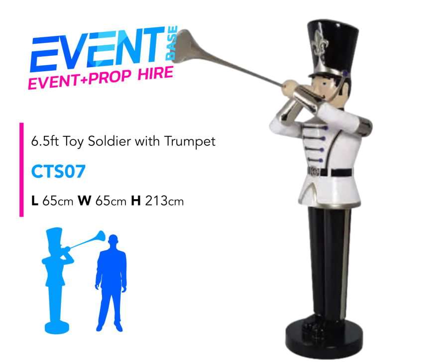 Description: Introducing this new model Toy Soldier with Trumpet, this is a really nice piece and perfect for any traditional toy themed event installation. This item has a new paint colour combination of White and Gold which looks very sophisticated.... for a Toy Soldier that is! We have created Gold Podiums available as an add-on to boost the height to 9ft if desired. This Tin Toy Soldier model would look fantastic at any Santa's Grotto, Workshop or Giant Toy Theme Event. We also have smaller 5ft versions available if you would like to stagger sizes!