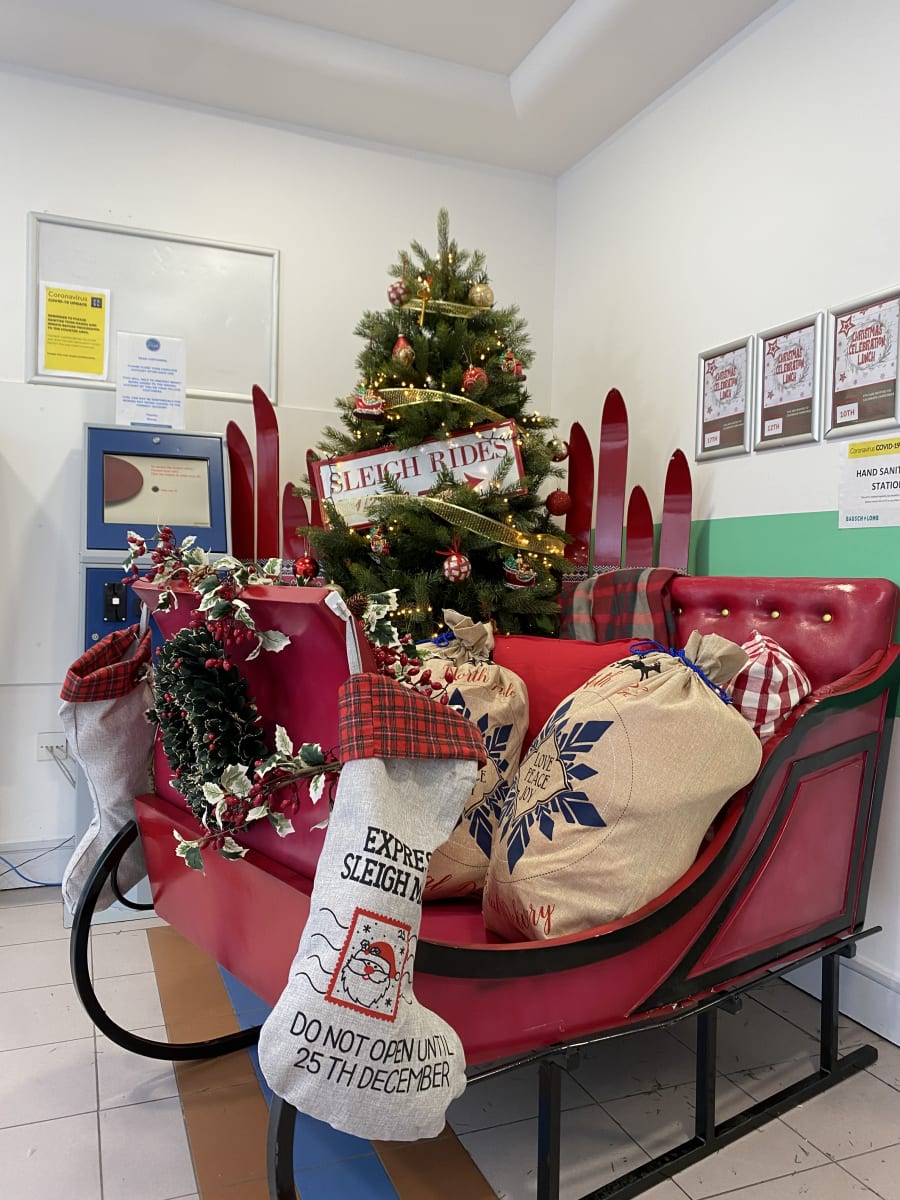 Hop inside, throw on a warm blanket and go dashing through the snow in Santa's wonderful sleigh. We also have larger versions available and a choice of colours!