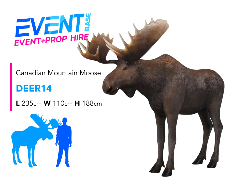 Description: Our Mountain Moose Prop is an impressive piece, this is a life-size adult Moose display model. Perfect for a natural looking, Canada, Off-piste, Wild Forest, Winter Wonderland, Wildlife or Aprés Ski display. Why not take a look at the other wild animal hire options available on our web-site? We have a huge range of Christmas event props available for hire. Including life-size reindeers, snowmen, santa's throne, sleighs & lots more... Contact us for further information. Long and short-term hire available.