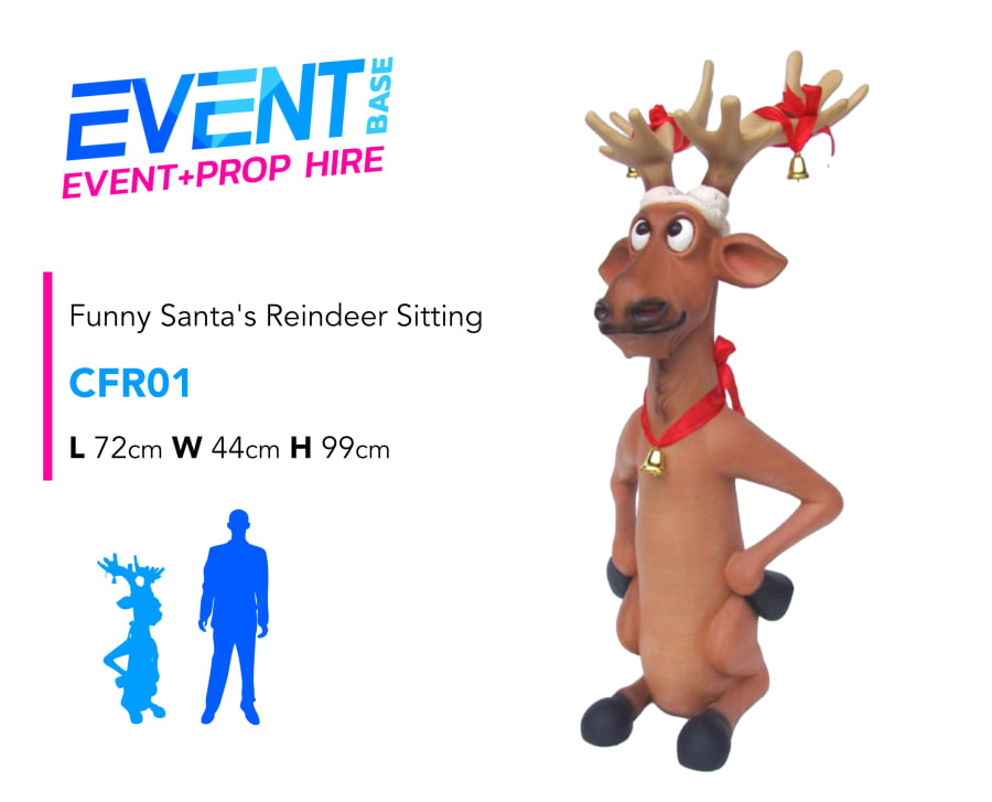Description: This funny reindeer is standing almost 5ft high in a cheeky pose with his hands on his hips. Our funny reindeer series is an animated, fun looking, cheeky & yet cute style of poly-resin statue. All these models are hand-painted making these a striking prop hire model. Don't forget to check out our other cheeky fun reindeer! We have a huge range of Christmas event props available for hire. Including life-size reindeers, snowmen, santa's throne, sleighs & lots more... Contact us for further information. Long and short-term hire available. Check out our other items which may be added to this item in order to create a unique Santa's Grotto. Full Event Hire & Grotto Packages available including; Grotto, Lighting, Santa's Throne, Props, Carpet, Christmas Trees, Decorations etc... Grotto Management including Staff & Gifts also available. Don't forget to use our search bar on our homepage to find exactly what you need!