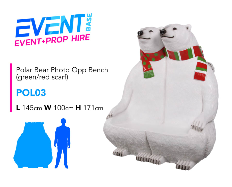 Description: Our Giant Polar Bear Photo Love Bench is a really nice prop hire item. These polar bears are linking in a hug and guests can sit between them on the bench for a photo. This item is the perfect Christmas Photo Opportunity or Photo Station. Enhance the display with our Winter Scene Backdrops, White Picket Fencing, Polar Signs, Ice Bergs & more... This item can be branded as required, contact our team for further information. Why not take a look at the other Photo Opportunities available on our web-site? We have a huge range of Christmas event props available for hire. Including life-size reindeers, snowmen, santa's throne, sleighs & lots more... Contact us for further information. Long and short-term hire available. Check out our other items which may be added to this item in order to create a unique Santa's Grotto. Full Event Hire & Grotto Packages available including; Grotto, Lighting, Santa's Throne, Props, Carpet, Christmas Trees, Decorations etc... Grotto Management including Staff & Gifts also available. Don't forget to use our search bar on our homepage to find exactly what you need!