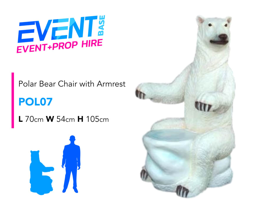 Description: This cute little polar bear chair is great for kids to sit on and pose for a pic in a Winter Wonderland, Frozen or Polar Display! The polar bear is life-like poly resin sculpture with hand-painted characteristics to fool any guest. This item is really impressive when hired with other Polar Bears. Enhance the display with our Winter Scene Backdrops, White Picket Fencing, Polar Signs, Ice Bergs & more... This item can be branded as required, contact our team for further information. Why not take a look at the other Photo Opportunities available on our web-site? We have a huge range of Christmas event props available for hire. Including life-size reindeers, snowmen, santa's throne, sleighs & lots more... Contact us for further information. Long and short-term hire available.