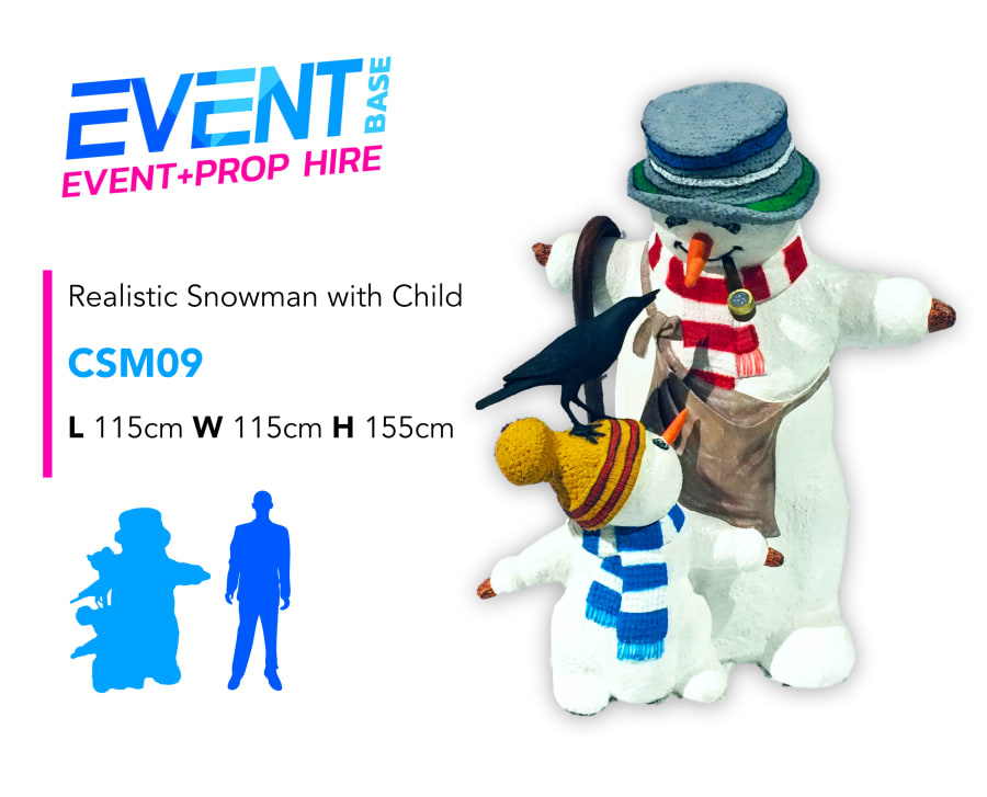 Description: This Snowman & Child prop is a really traditional prop and has exceptional detail from a crow on the Snowman shoulder, to the pipe coming out of his mouth.