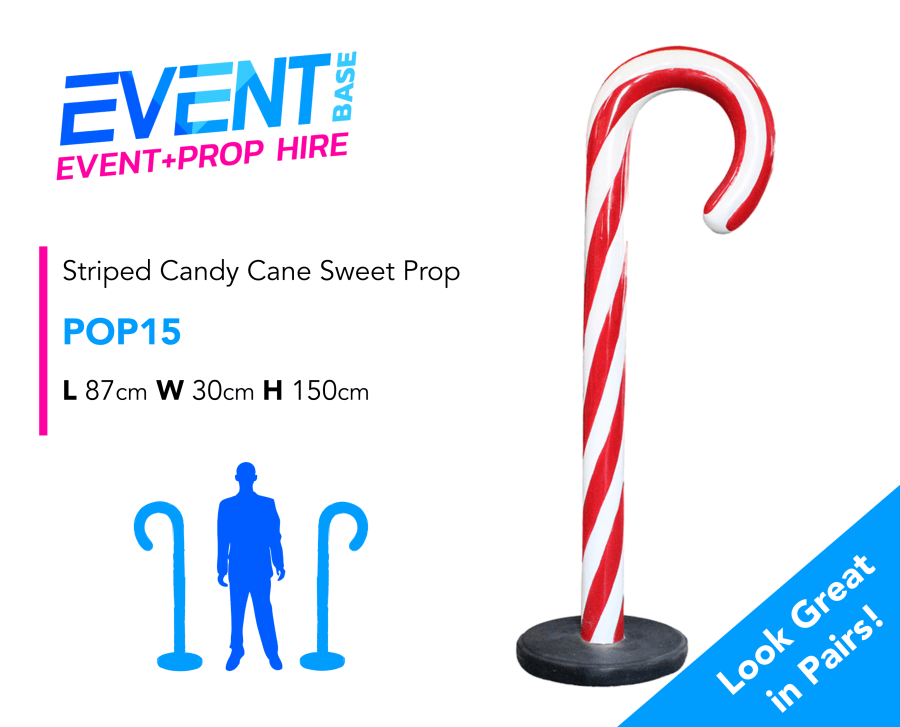 Description: Introducing our standard Candy Cane striped in Red & White. This is possible our most popular hire item and we have a large stock in our inventory. This prop display model is ideal for any Christmas, Santa's Grotto, Candy Land, Charlie & the Chocolate Factory, Willy Wonka, Carnival, Grinch or Giant Sweet theme!