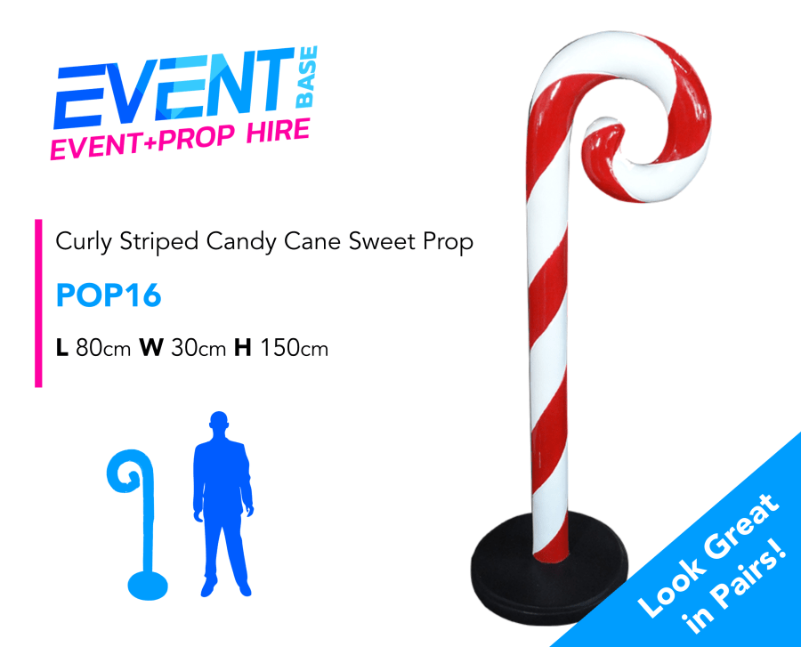 Introducing our Curly Candy Cane striped in Red & White. This is possible our most popular hire item and we have a large stock in our inventory. This prop display model is ideal for any Christmas, Santa's Grotto, Candy Land, Charlie & the Chocolate Factory, Willy Wonka, Carnival, Grinch or Giant Sweet theme!