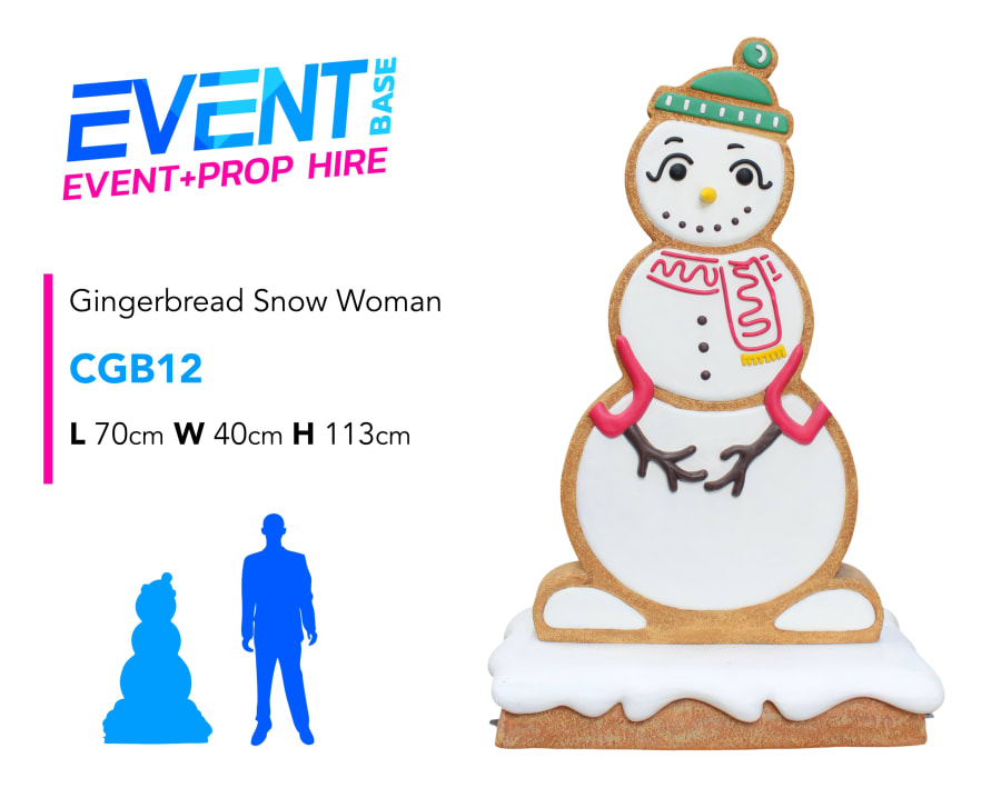 Description: This Gingerbread Snow Woman prop for hire is a nice piece and looks great at a variety of events. Check out the other members of this Gingerbread Family including; cats, dogs, drums, sleighs and even thrones! This prop display model is ideal for any Christmas, Santa's Grotto, Candy Land, Charlie & the Chocolate Factory, Willy Wonka, Carnival, Grinch or Giant Sweet theme!